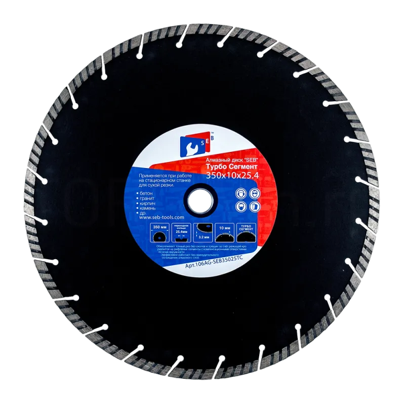 Диск обладает диаметром 350 мм и посадочным отверстием в 32 и 25,4 мм, что обеспечивает его совместимость с большинством стандартных угловых шлифовальных машин и резчиков. Высококачественный материал и продуманная конструкция алмазного сегмента гарантируют долгий срок службы и высокую производительность.