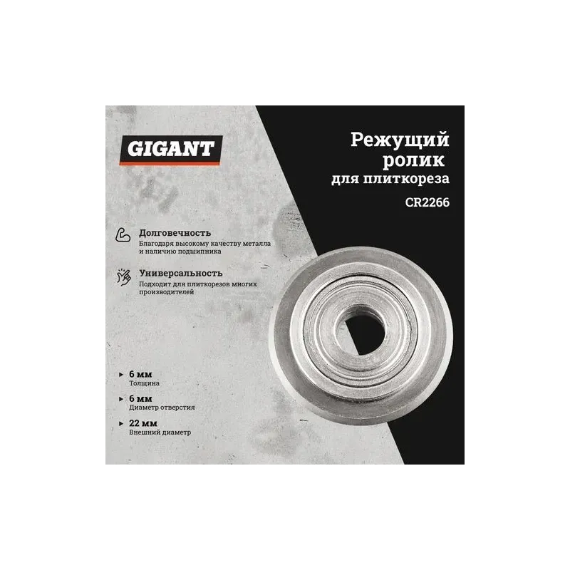 Ролик режущий с подшипником для плиткорезов Gigant CR2266 22х6х6 мм