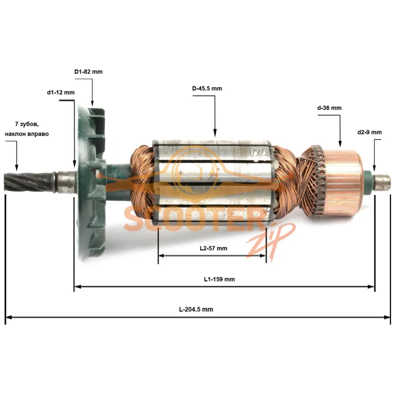 Ротор / Якорь для дисковой пилы КОНАКОВО ДП-5119 (L-204.5мм; D-45.5мм; 7 зубов, наклон вправо)
